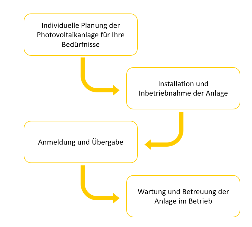 Im nächsten Schritt folgt die fachgerechte Installation und Inbetriebnahme durch unser hochqualifiziertes Montageteam. Wenn die Solaranlage fertig installiert ist führen wir die Anmeldung bei den entsprechenden Stellen durch und können die Anlage schließlich an Sie übergeben.